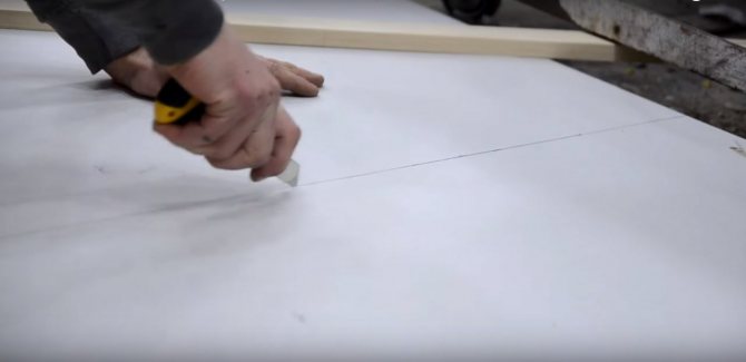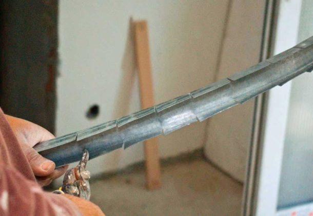На сложных участках можно сделать надрезы шириной 2-3 мм, после чего заполнить их армирующей сеткой, чтобы шпатлевка равномерно распределилась. Кроме того, следует зашпаклевать места крепления саморезов и прочего крепежа.