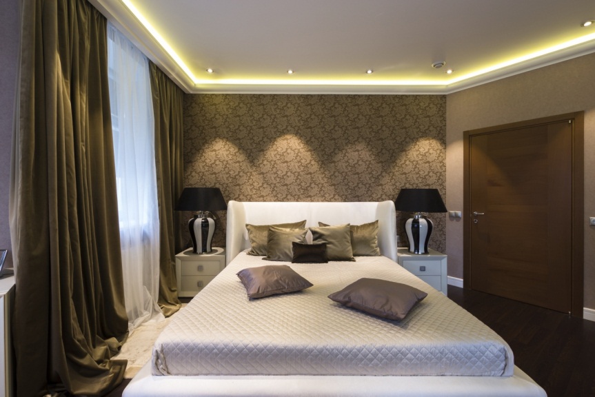 Особый акцент можно сделать на стене, по которой будет скользить свет. Можно не уделять много внимания стенам, на которых не будет прямых солнечных лучей, на них не будут видны мелкие дефекты. Но если на стене висит светильник, то под ним будут хорошо видны все изъяны и даже мусор, которые были в клеевой массе.