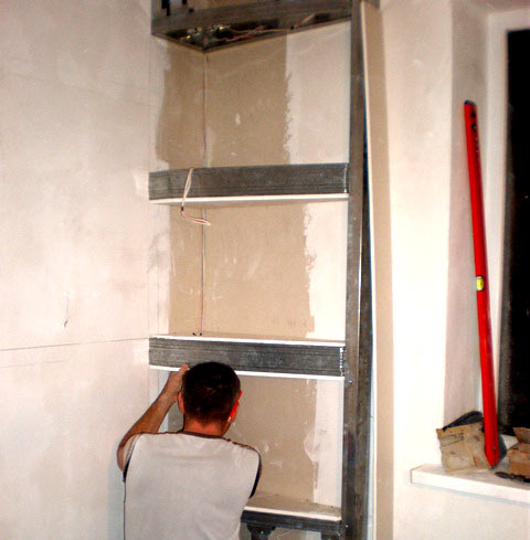 - Гвозди и шурупы нужно углубить в поверхность гипсокартона.