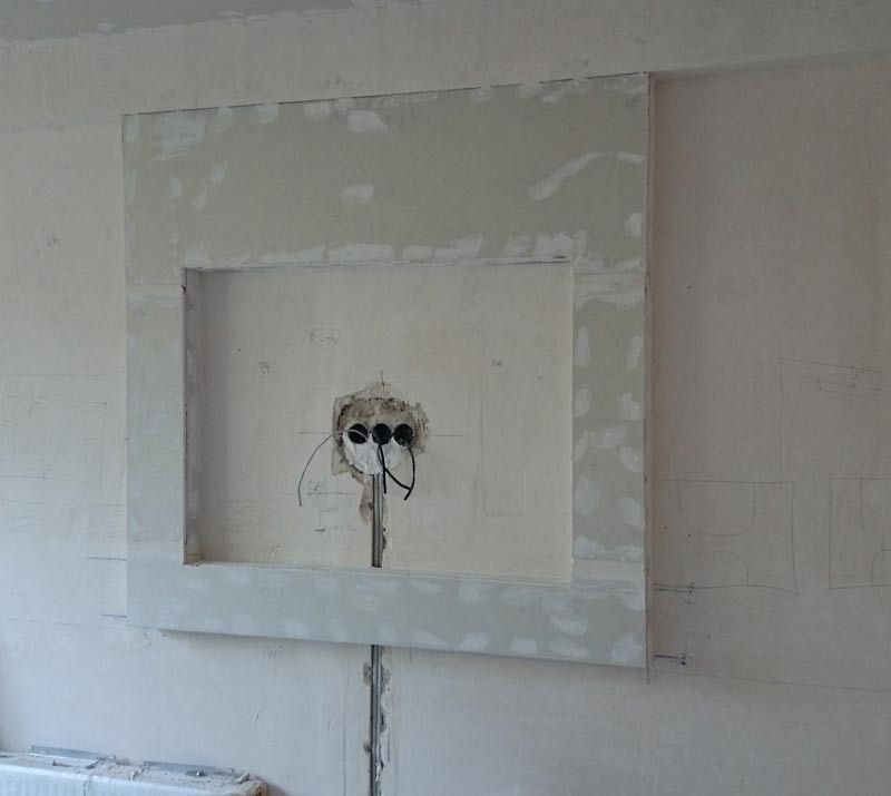 Чтобы цвет жидких обоев был однородным, гипсокартон полностью шпаклевывают