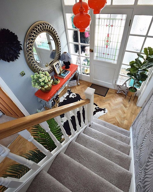 Еще один предмет, который поможет сделать комнату оригинальнее, — необычный светильник, возможно, сделанный вручную. Он обязательно впишется в дизайн прихожей, так как здесь не нуждается в поддержке других деталей интерьера. И от такой лампы быстро не надоест, ведь видишь ее часто, но ненадолго.