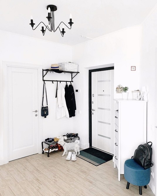 1. Требуемый минимум. Если пространство очень ограничено, выберите 2-3 основных предмета меблировки. Например, скамейка с обувным шкафом и вешалкой.