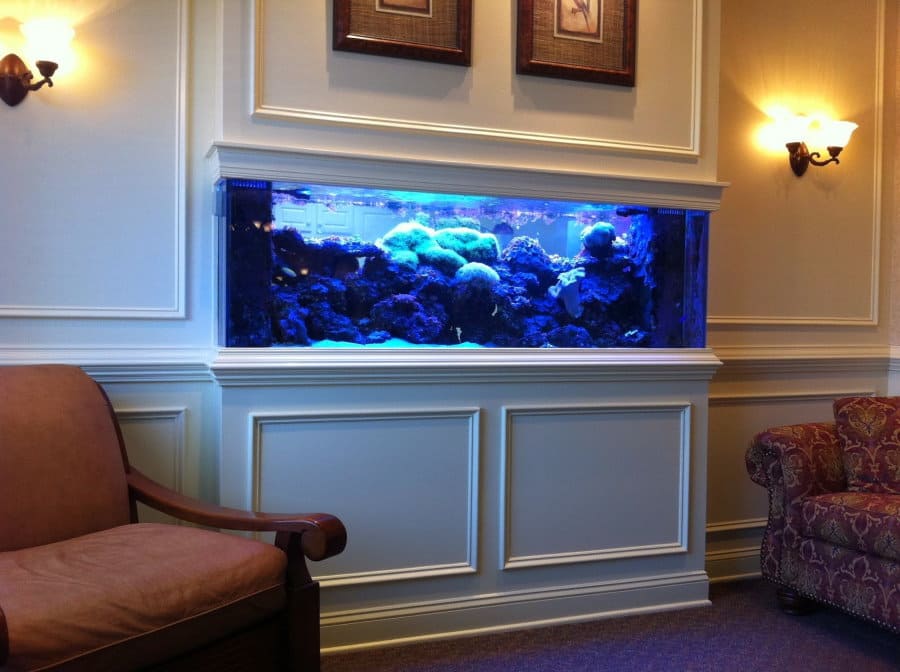 Настенная кухня — идеальное место для холодильника на маленькой кухне. Помимо навеса на террасе гостиной в нише, возможна установка аквариума.