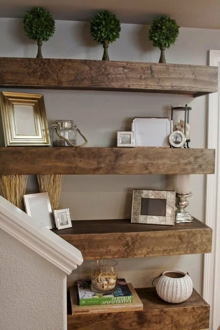 Самый простой вариант — оригинальная полка для хранения полезных или оригинальных сувениров и декоративных мелочей. Любая неиспользуемая стена или ее часть, пустая перегородка из гипсокартона может стать отличным местом для украшения ниши.