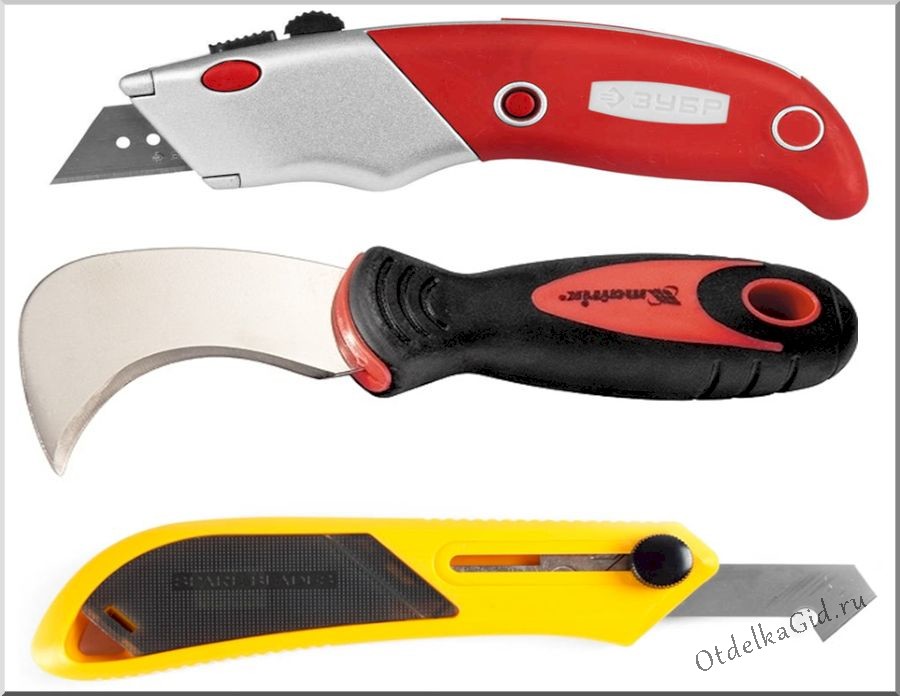 - Острый строительный нож, толщина которого не менее 12 мм. Из-за того, что лезвия быстро затупляются, их нужно будет часто менять.