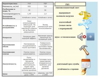 Чтобы ответить на наш вопрос, нужно понимать, что это за материал. Гипсоволокнистые листы, как и гипсокартон, изготавливаются из гипсовой штукатурки. Но на этом сходство заканчивается. Основными особенностями GVL являются: