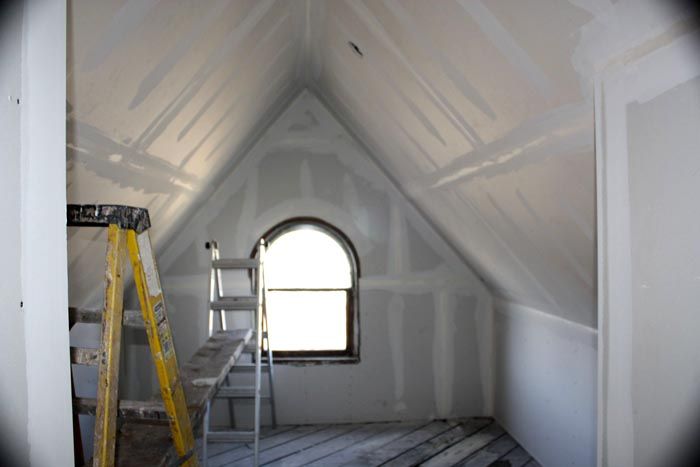 Отдельно нужно рассказать о гипсокартоне для стен. Толщина 12,5 мм используется для легкого выравнивания поверхности. Для потолочных конструкций следует использовать толщину 9,5 мм. Самый тонкий гипсокартон используется для фигурных конструкций. Если нужно сделать перегородку с дополнительной звукоизоляцией, можно установить два листа гипсокартона.