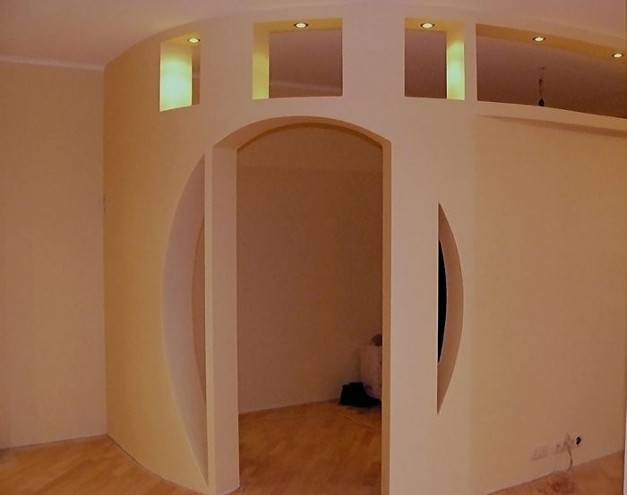- изготовление различных декоративных конструкций: многоуровневые потолки, ниши, ступени, арки.