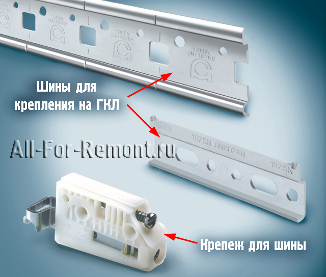 - Закрепите на корпусе сборной шины саморезами. Можно соединить рейку напрямую с гипсокартоном, но такой монтаж ненадежен.