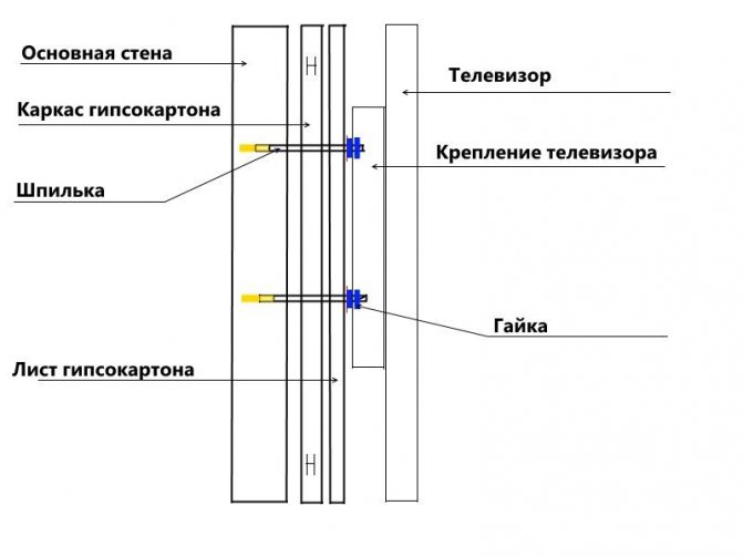 Самый надежный вариант настенного крепления телевизора на гипсокартоне.