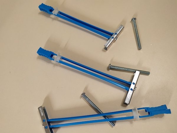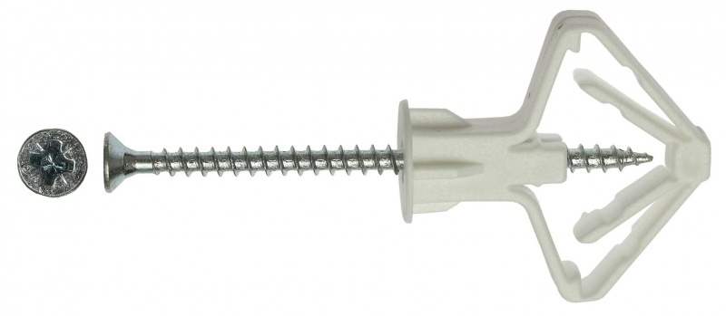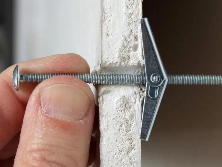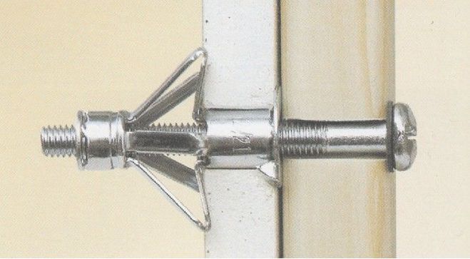 Дюбель «бабочка» в конце завинчивания разблокируется, создавая прочный упор, удерживающий всю конструкцию.