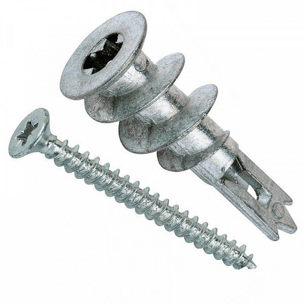Использование фурнитуры, предназначенной для навеса из массивных и тяжелых предметов, на гипсокартонную отделку позволяет закрепить достаточно громоздкие элементы. В качестве материала стоит обратить внимание на следующие подвиды дюбелей: