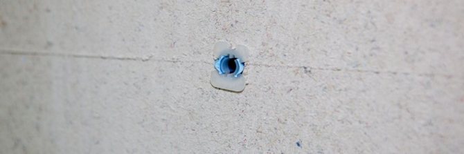 - вбиваем пластиковый дюбель с резьбой на поверхность, благодаря которому крепеж надежно фиксируется в толщине гипсокартона. Однако этот метод можно использовать для крепления небольших кронштейнов для телевизоров.