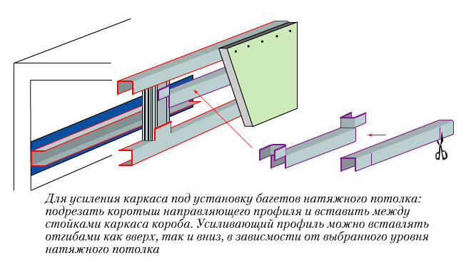 Иногда для установки используют более широкий профиль, чем стандартный, который также устанавливается при сборке реек под гипсокартон.