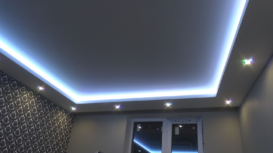 Чтобы было легче разобраться, разберем простейший пример. Самым распространенным в отделке потолков помещений является использование короба из гипсокартона с вмонтированными в него точечными осветительными приборами.