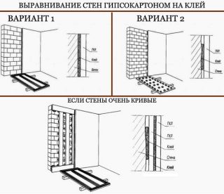 В первом случае также можно утеплить комнату, установить защиту от внешнего шума, влажности, пара. Каркас вдвигает стену в комнату на 7-10 см, поэтому в небольших помещениях применяется безрамный метод. Стены тщательно выровнены штукатуркой под листы.
