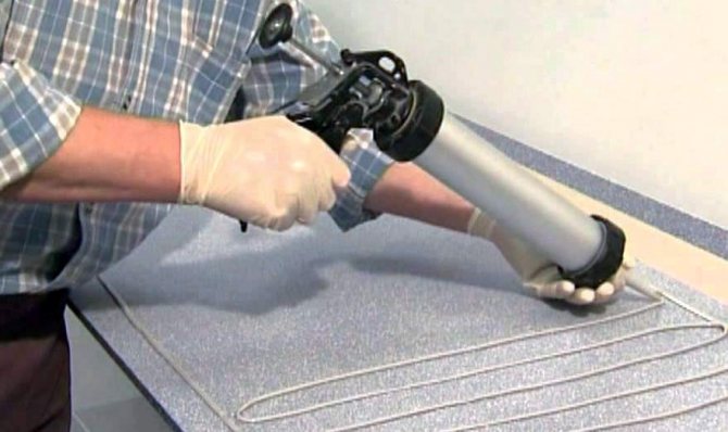 После приклеивания листов к ленте остаются швы, которые заделываются герметиком, а затем приклеиваются декоративные планки. На угловые стыки кладут внутренние или внешние углы.