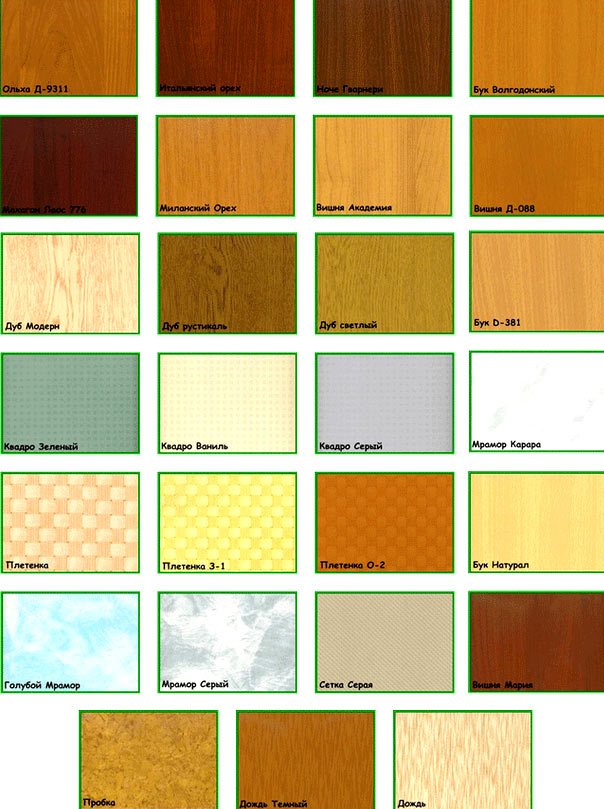 - Цветовая палитра самая разнообразная, фактура на любой вкус, вплоть до таких видов, как мрамор или искусственное дерево. На солнце цвета остаются такими же яркими, какими были на момент покупки.