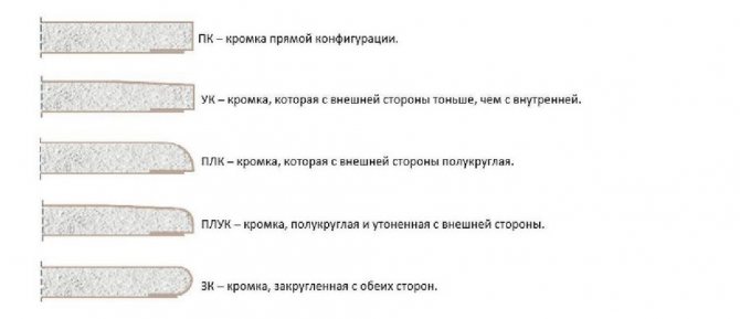 Листы гипсокартона могут иметь различную форму продольного края. Часто имеет меньшую толщину, что позволяет аккуратно затирать швы. Тип кромки обязательно указывается в маркировке товара.