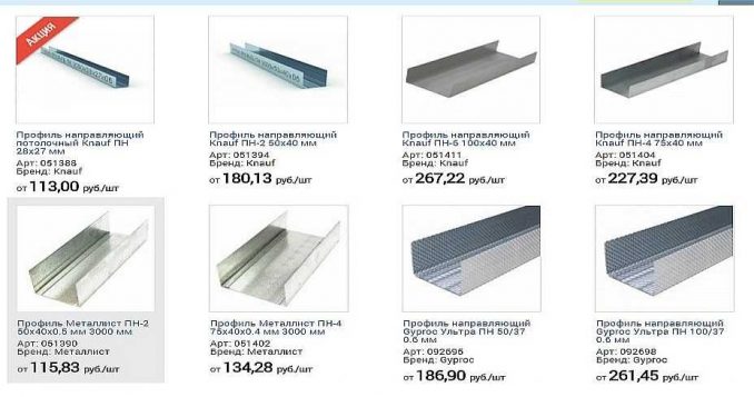 Это скриншот с ценами на профили из гипсокартона в одном из интернет-магазинов