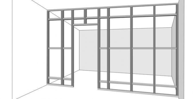- Наличие перемычек, которые состоят из стоечного профиля. Они располагаются на расстоянии 75 см друг от друга, причем верхняя перемычка должна находиться на стыке листов гипсокартона, если длины листов недостаточно по высоте. Поэтому размеры всех перемычек складываются и прибавляются к стоечным профилям.