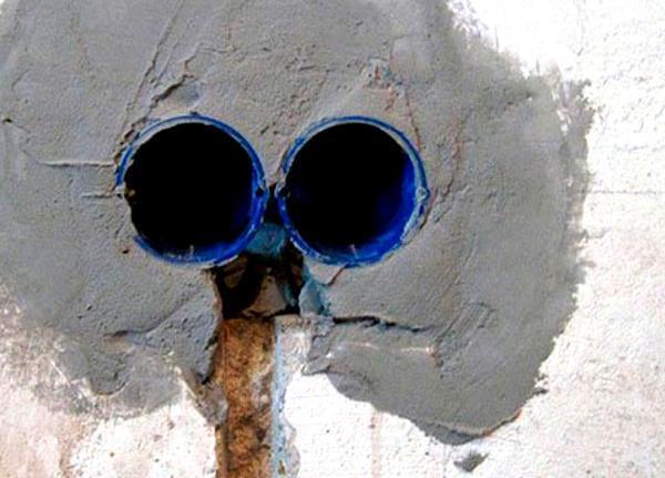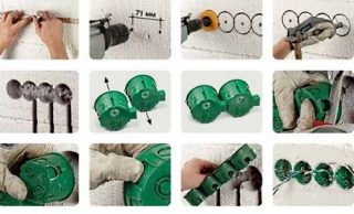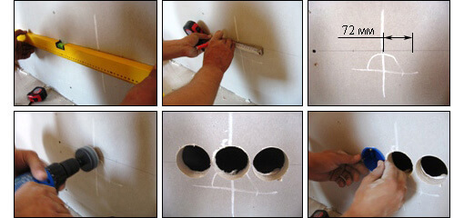 - В обеих полках просверливаются большие отверстия, так что угол становится частью штукатурки, благодаря чему они держатся.