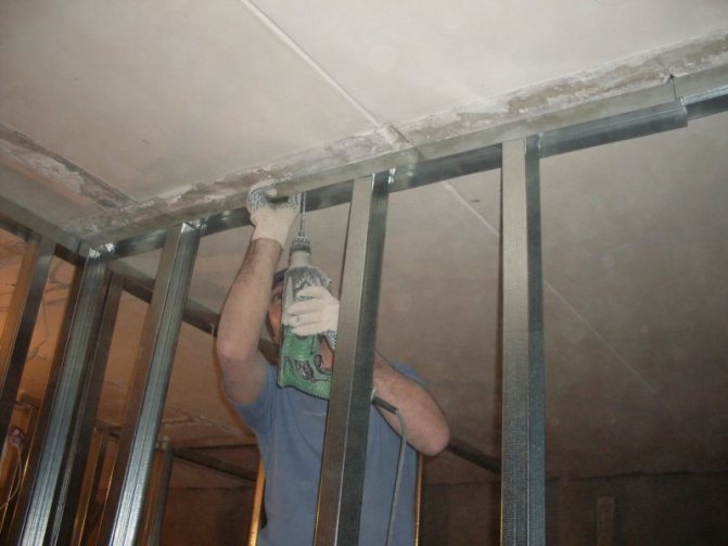 Пример монтажа каркаса под потолок из гипсокартона