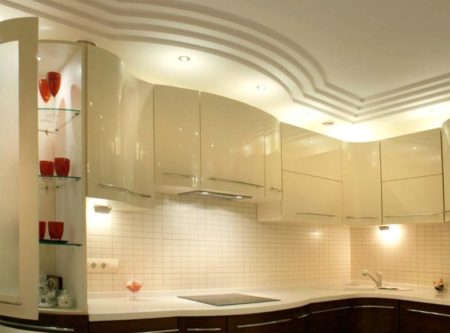 Грамотная отделка потолка гипсокартонным материалом на кухне