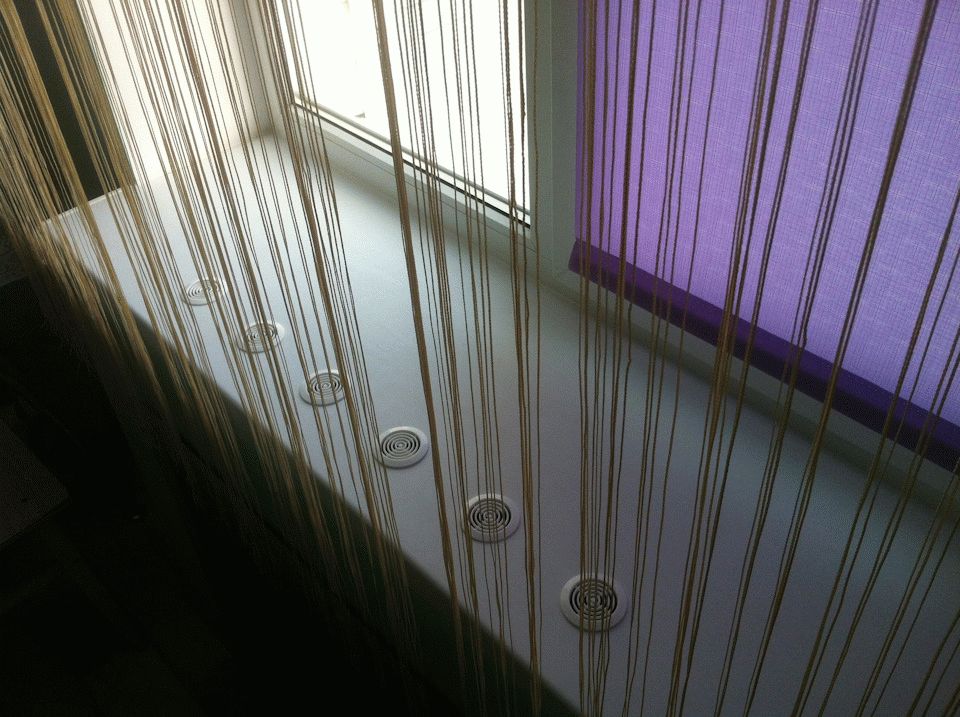 Для нормального теплообмена в аккумуляторе проделали отверстия в подоконнике и установили вентиляционные решетки.