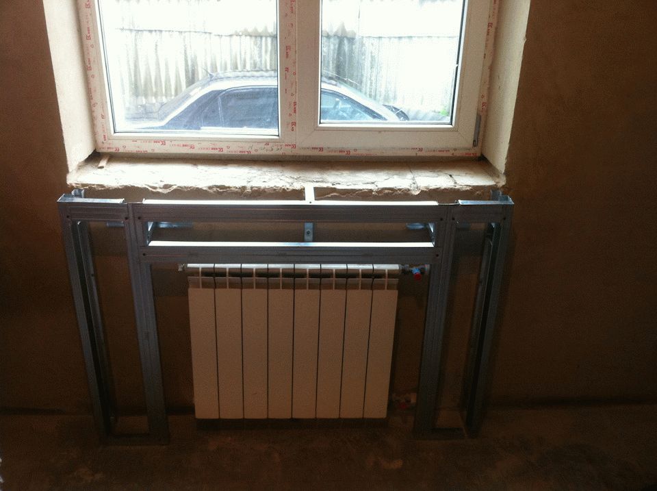 В некоторых квартирах радиаторы отопления устанавливают в нишах, которые девелоперы предусматривают под окнами. В этой ситуации подойдет только второй способ сборки коробки.