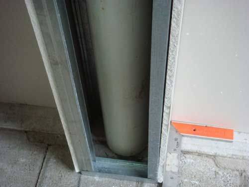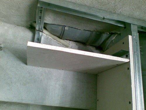 Капитальный ремонт помещения сталкивается с проблемой невозможности переноса различных элементов водопроводов и коммуникаций. Дизайнерские задумки прервёт старая труба или громоздкий стояк. Выходом из сложившейся ситуации является покрытие труб гипсокартоном.