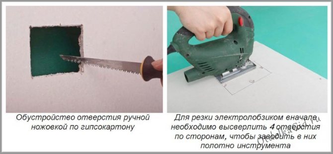 Просверлить отверстие в листе гипсокартона для захвата можно при помощи дрели, ножа, но лучше работать дрелью с фрезой. Его подбирают по диаметру стакана, чтобы легко просверлить нужное отверстие.