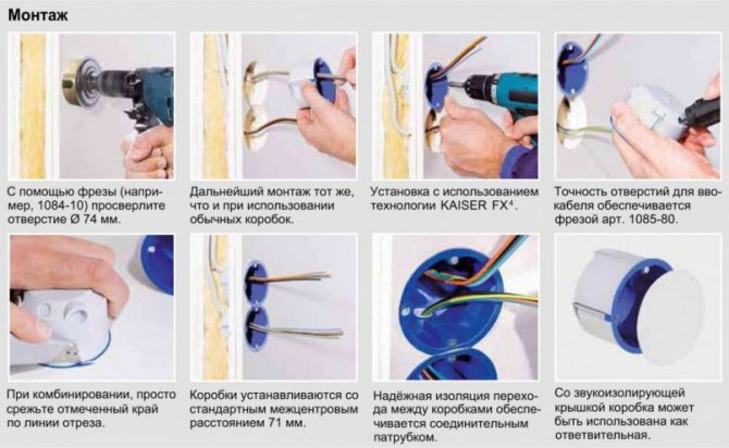 Принцип крепления подрозетников в короб