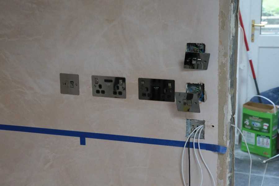 Нет большой разницы между установкой розетки и выключателя. Также применяется розеточная коробка, а в случае с гипсокартоном работа выполняется в 3 этапа. Подготовьте, сделайте отверстие, затем установите коробку и установите само содержимое. Последняя часть — прикрепить декоративную планку.