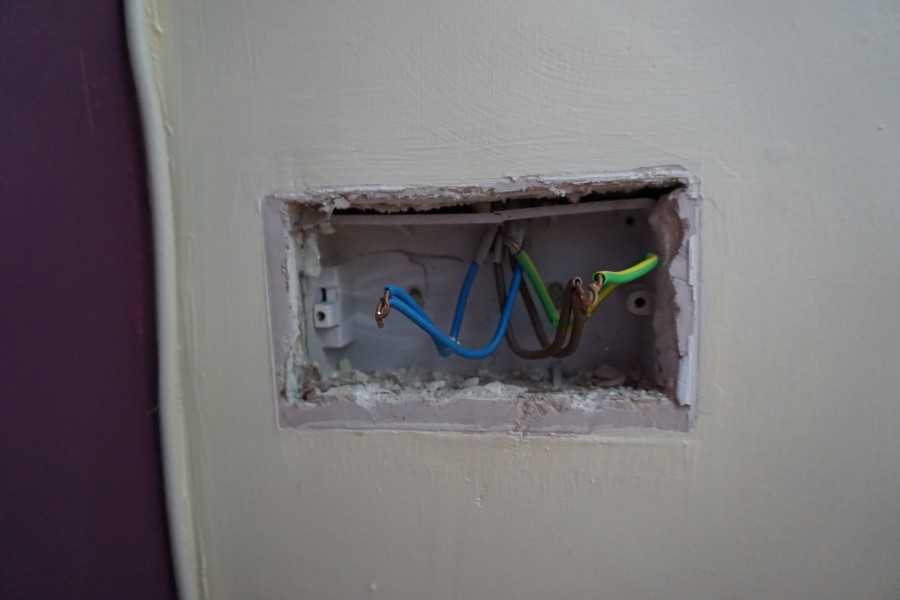 После установки розеточной коробки или их блока выступающие кабели проводки необходимо изолировать. Это если сразу не установить розетку или выключатель. Невозможно изолировать 2 провода вместе. Это приведет к закрытию. Каждый наконечник индивидуально обматывается изолентой.