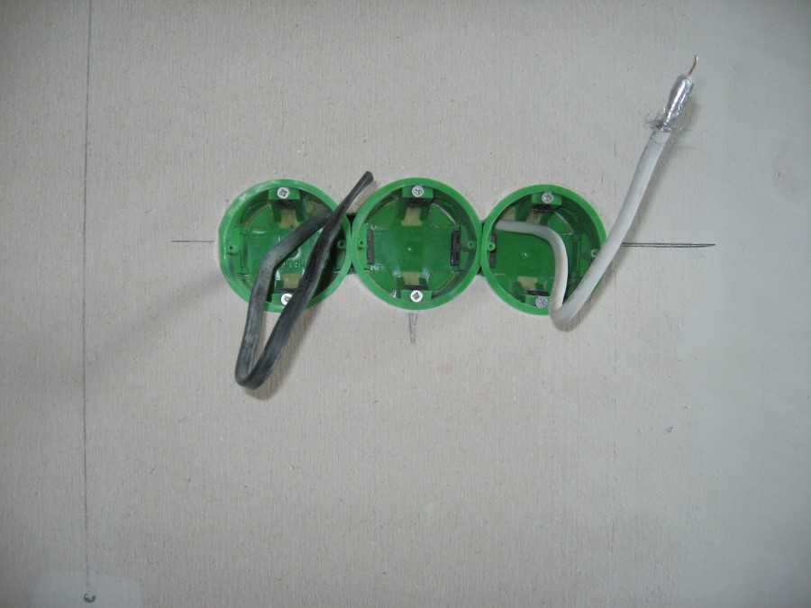 Чтобы просверлить отверстия под двойной или тройной монтаж, необходимо предварительно сделать разметку. Обязательное условие — единообразие (использовать один уровень). В продаже есть одиночные блоки для установки в них 2 или 3 розеток. После разметки просверливаются отверстия. Кабель подводится к одному месту в коробке. Кроме того, на раствор можно установить отдельные ящики.