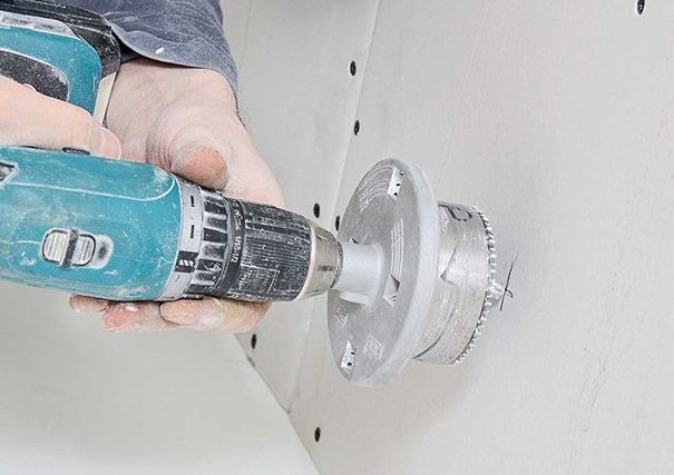 Идеальный вариант — использовать дрель с фрезой для гипсокартона (коронкой) для розеток. Диаметр фрезы 6,8 см, также она используется для монтажных работ по установке точечных светильников. Процедура создания дыры в стене следующая: