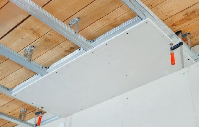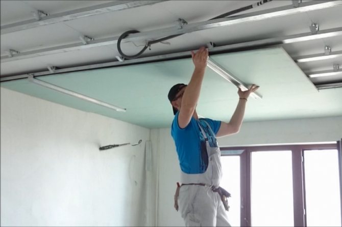 - Используется для выравнивания основного потолка. Под смонтированные листы удобно прокладывать световые коммуникации.