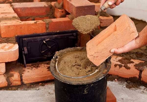 Глиняный раствор для печи используют в сухом виде. Кирпич кладут на тонкий шов, так как широкий шов сильно просыхает и лишний воздух попадает в печь, увеличивая расход топлива. Тонкий шов можно укладывать только из качественного раствора, с просеянными компонентами.