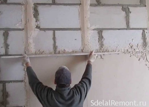 Подготовка стены из пеноблоков к нанесению штукатурки